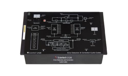 Scientech 2120 Error Detection and Correction – Cyclic Code is designed to provide the conceptual knowledge of code correction and detection by adding the redundant bits to actual bit pattern, which are use to represent the code word. Error detection is the ability to detect the presence of errors caused by noise or other impairments during transmission from the transmitter to the receiver. Error correction is the additional ability to reconstruct the original, error-free data.