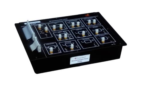 Scientech 2204 Study of FM Communication is a comprehensive learning solution specifically designed to provide conceptual and step by step understanding of Frequency Modulation and Demodulation techniques through observation of waveforms at various test points and measurement of parameters like Frequency deviation and Modulation index. Block wise modular organization of functional circuits with symbolic representation makes it easy to understand the process of FM generation, FM detection and study of FM Spectrum. The exercises provide a practical approach to the subject and will guide the students to understand each function.