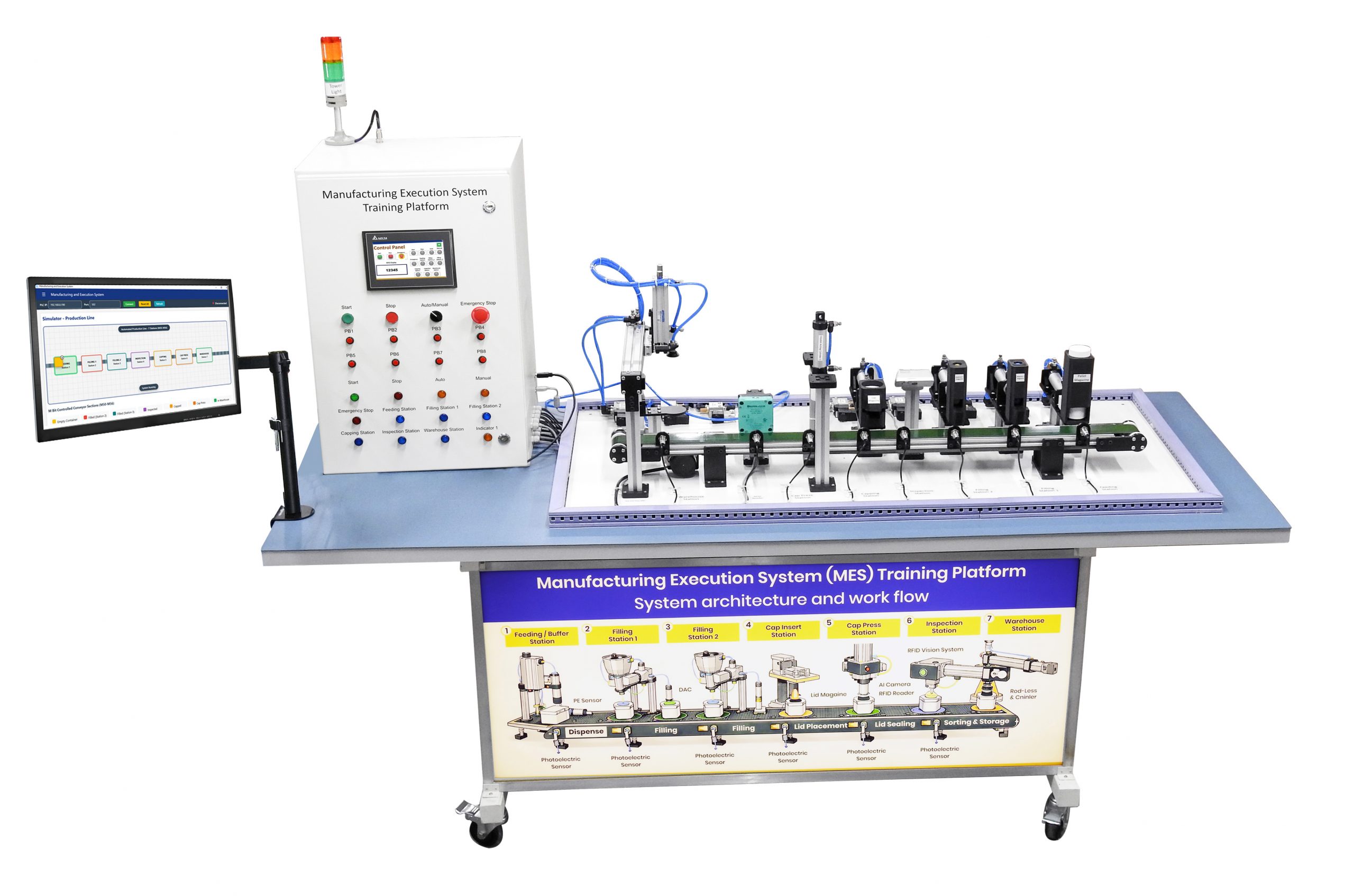 Scientech 2473 consists of different types of level Sensors such as Ultrasonic, Capacitance type, Point to Point, Pressure type, Magnetic Float type and DAQ, Solenoid Valve, Sump tank and Acrylic Measuring tank. The set-up has safety measures such as emergency shutdown and overheating protection. A wide range of experiments can be performed on the platform.